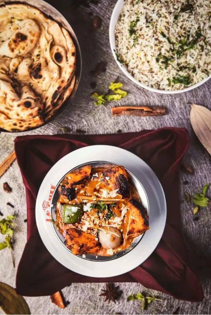 Famous Indian dish with marinated paneer in spices and grilled in tandoor.